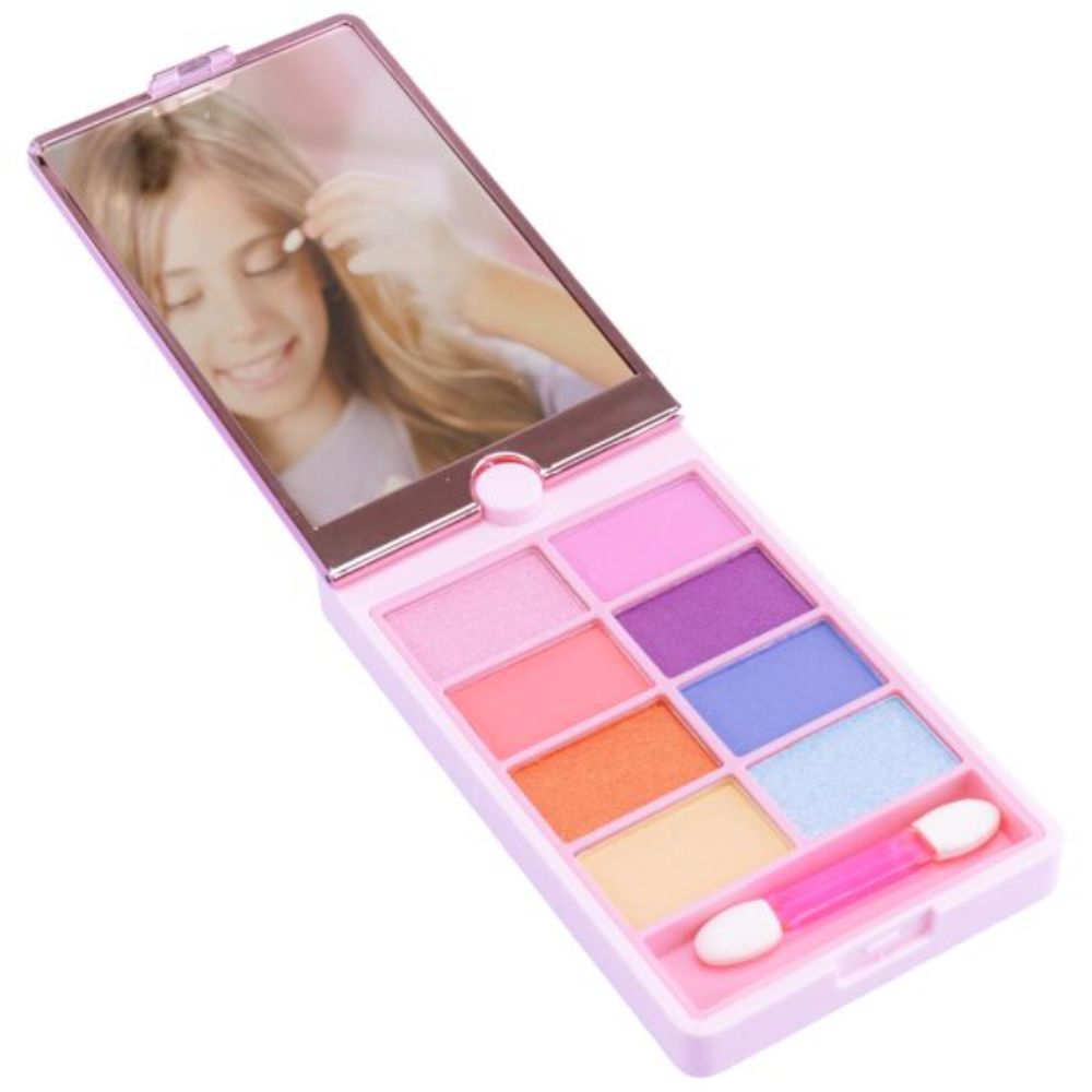 CONTENTS: 8 eyeshadows, 1 double-headed applicator, lid with mirror.