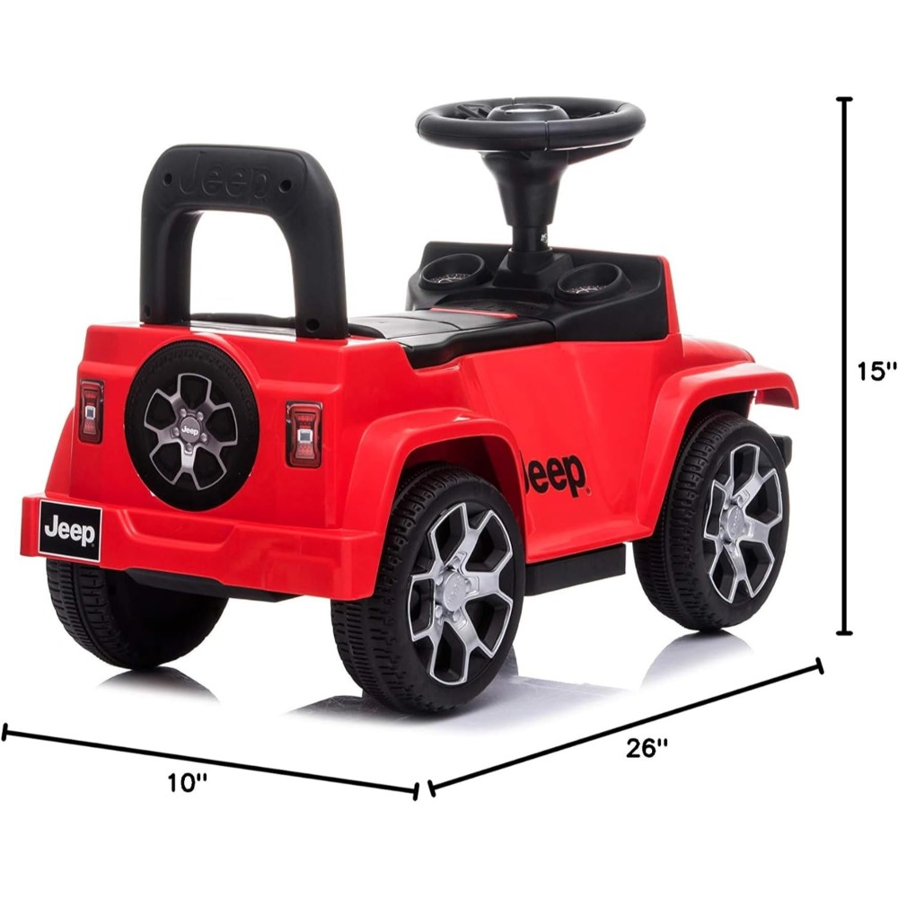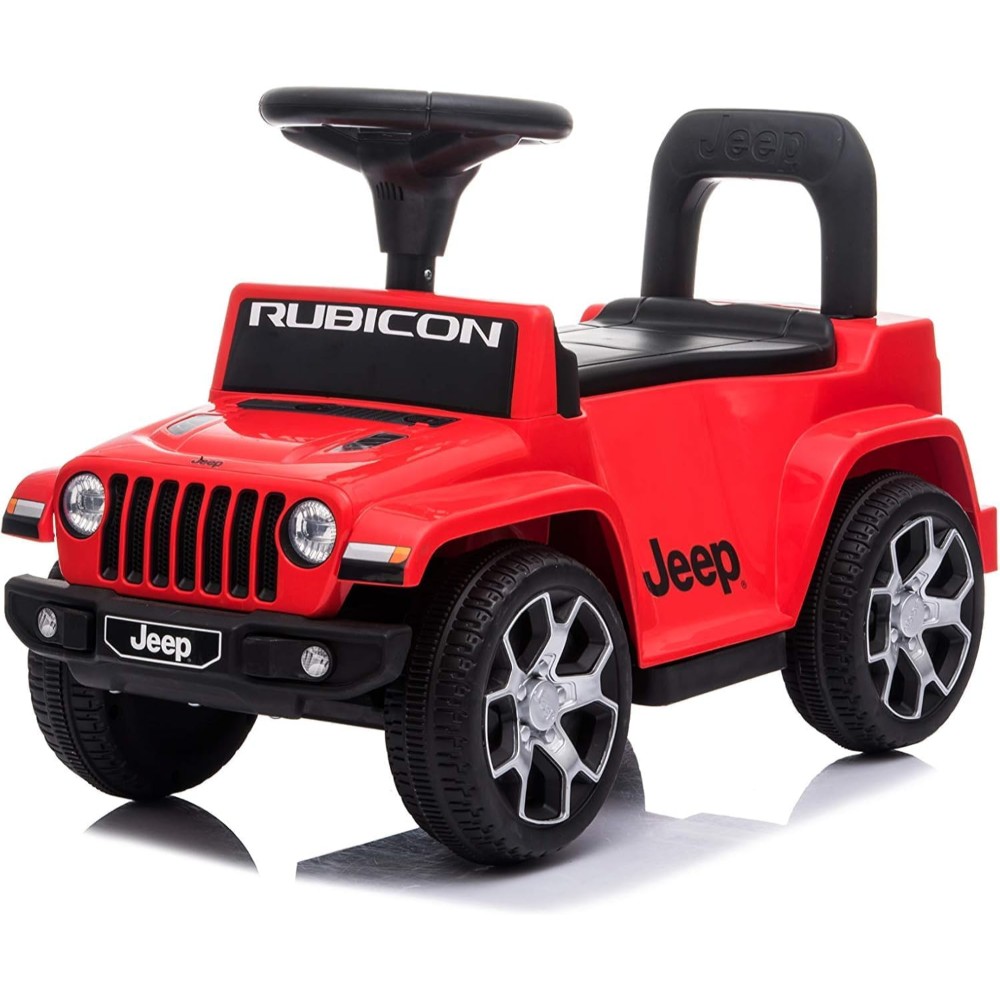 Help your kid become the coolest kid on the block with the Best Ride On Cars Jeep Rubicon Push Car. This ride-on toy lets kids “drive” around just like their parents on a realistically-detailed ride. The incredibly detailed Jeep Rubicon push car gets all the details right with an iconic front grill, squared body shape, and big tires. Powered by little kids’ feet, this ride-on car goes anywhere your child can go. And when kiddos get tired, parents or older siblings can push toddlers around using the push car handle at the back. This officially-licensed Jeep push car is designed to fit 1 child ages 1 to 3 years old who weighs less than 35 pounds. As your little driver scoots the car down the sidewalk or around your home, they can use the steering wheel to honk the horn or play music. This toy vehicle comes with 2 AA batteries to power the sound making. Kids can take toys along for the ride in the storage compartment under the seat. When your little kiddo’s gotta burn rubber, you can start them off with the Best Ride On Cars Jeep Rubicon Push Car.