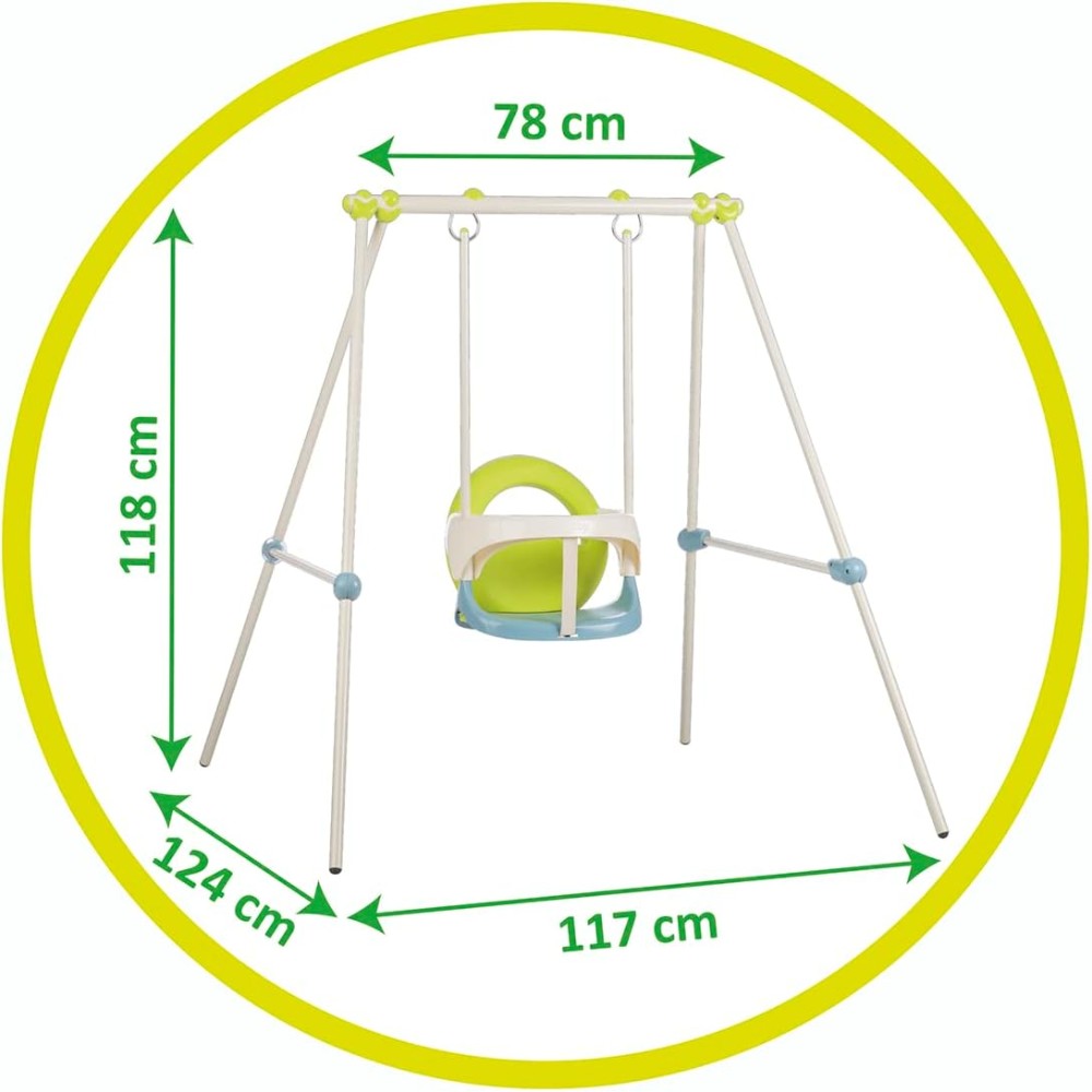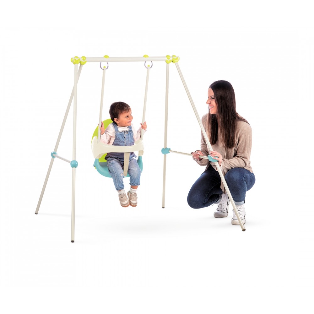 With the metal baby swing, your little one will discover the feelings of the swing from the age of 6 months. Thanks to the sturdy and stable metal structure, and to the seat equipped with a roll bar, your toddler will enjoy the swing securely. It can be used inside or outside under parental supervision. Plastic pieces are anti-UV treated for a good resistance and colors durability over time! The metal baby swing promises long play hours! Anti-UV. Max 25kg