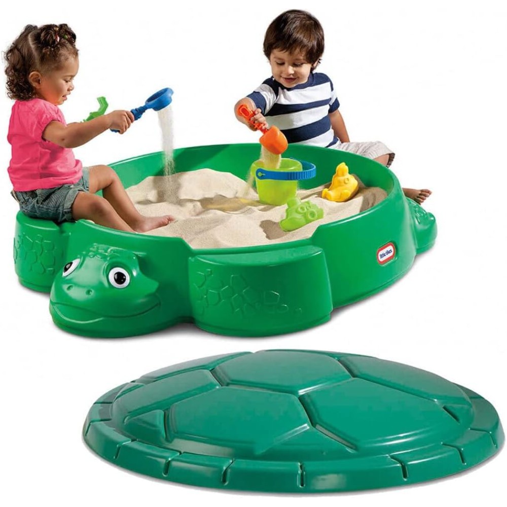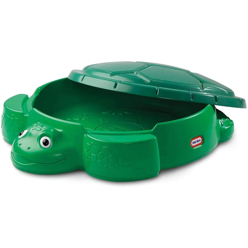 Classic turtle with shaped, friendly face and lots of tortoise shell details. Plenty of space for various sand games. Moulded relief on the bottom of the sandbox encourages digging on removable tank to cover the sand. Thanks to the two seating surfaces on the outside of the sand pit, children stay in the sand play area. The turtle sand box by Little tikes has seating surfaces on the outside of the sand box. A great outdoor tool for encouraging creative and social play.
