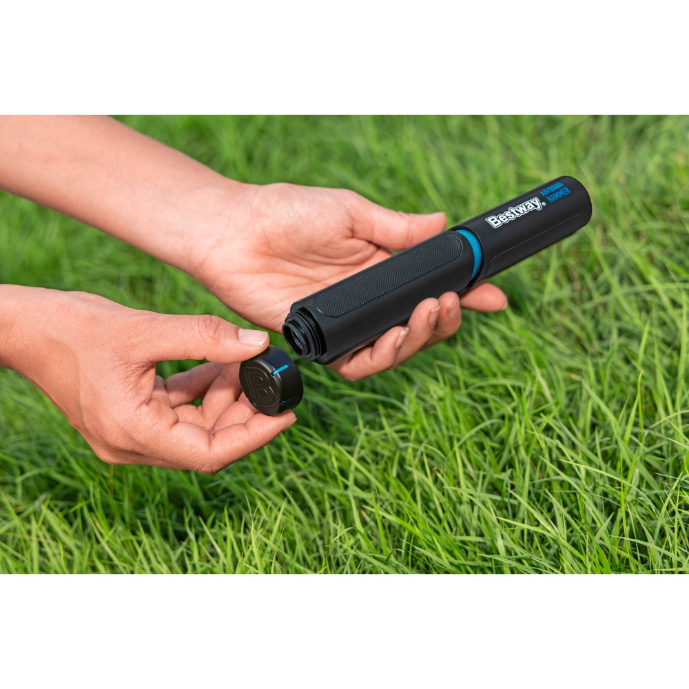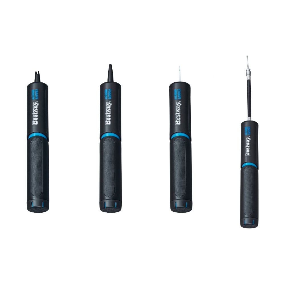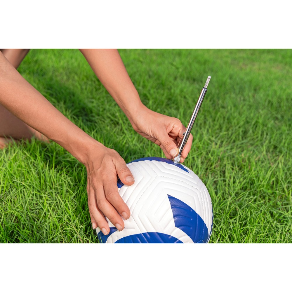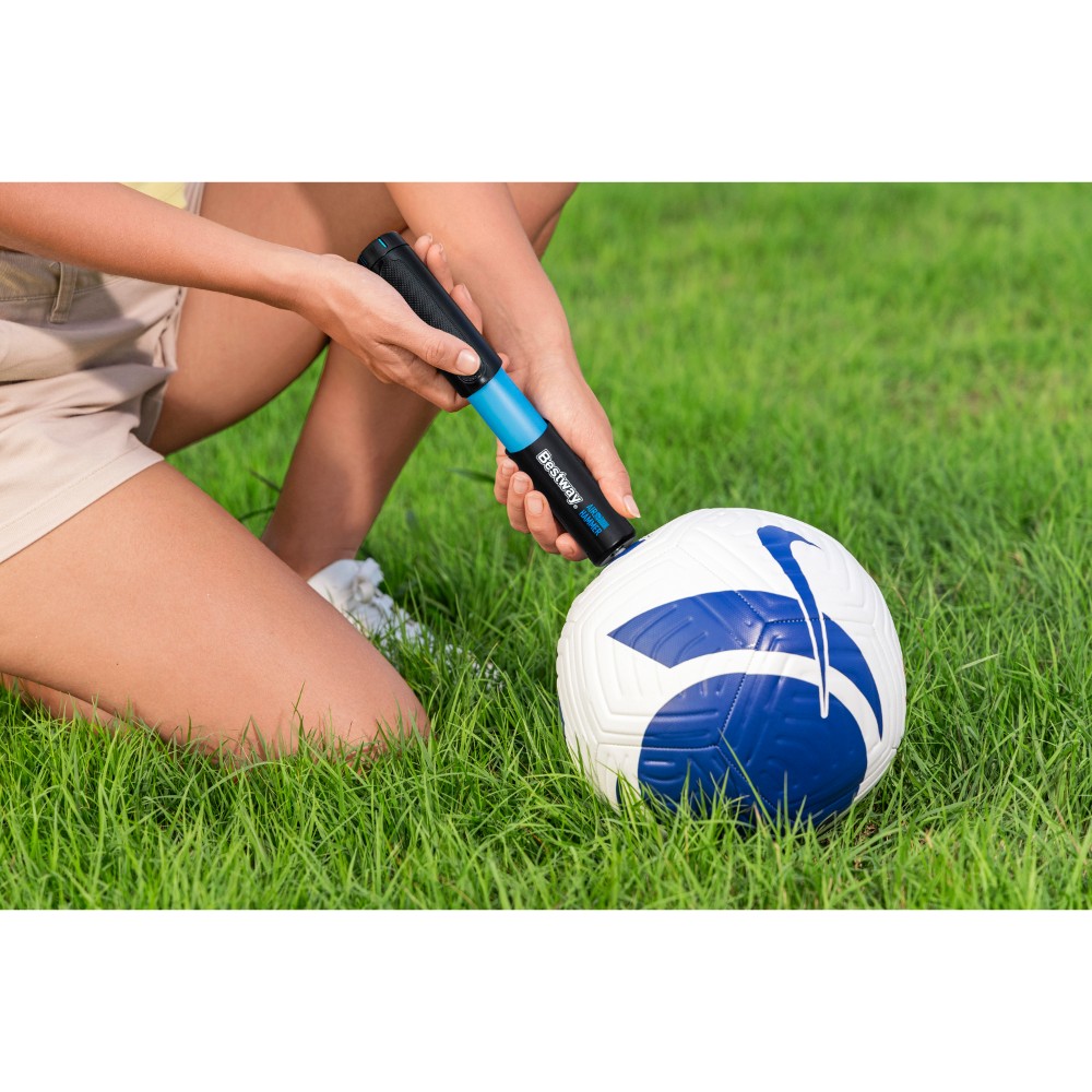 The ball lies flat in the grass, the game is in danger of being called off – a moment everyone knows. But with the Bestway® Air Hammer™ ball pump in your hand, this disappointment is a thing of the past. Imagine pulling this compact and powerful hand pump out of your bag and restoring the ball to its perfect shape in no time. Thanks to its handy size of just 20 x 3.3 x 3.3 cm and a feather-light weight of 128 g, it’s your discreet companion that fits in any sports bag and ensures that the fun never stops. This pump for sports balls is more than just a practical tool – it’s a small, ingenious powerhouse. With an air pressure of up to 0-12 PSI, you can effortlessly breathe new life into any of your balls, whether it’s a soccer ball, basketball, or volleyball. Each pump efficiently delivers 5 ml of air, making inflation quick and effortless. What makes the Air Hammer™ ball pump special is the cleverly integrated storage compartment right in the handle. The three included air needles and two adapters fit securely here. No searching, no losing – you always have everything you need for perfect ball pressure. The Bestway® Air Hammer™ ball pump was developed so you can fully concentrate on what really matters: the joy of the game and shared moments with friends. It’s the reliable partner that ensures a flat ball never takes the lead. Whether in the park, on the beach, or at practice – this small, powerful ball pump guarantees non-stop fun and action. Pack it and rest assured that your next game is always just a few pumps away.