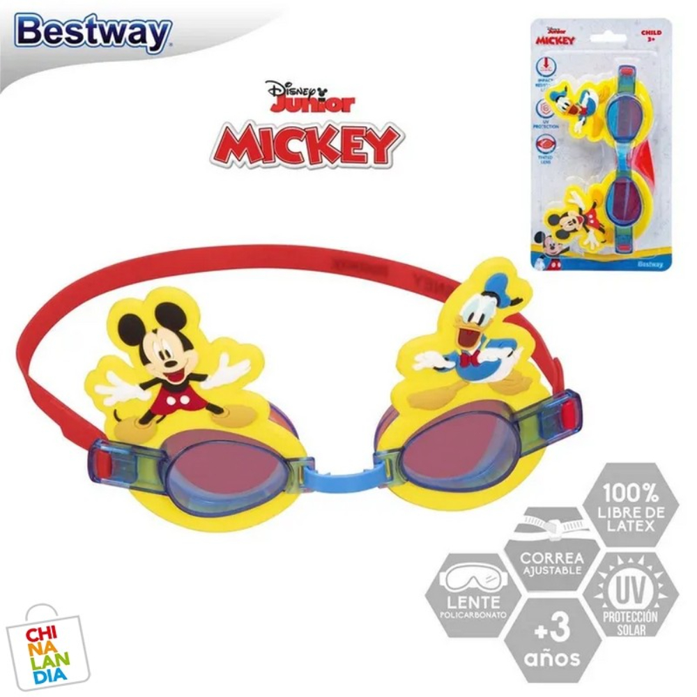 The Bestway Disney swimming goggles with Mickey Mouse & Donald Duck design are perfect for little adventurers aged 3 and over and bring fun into the water. These swimming goggles feature a playful Disney Jr.® Mickey & Donald Duck design that stimulates children’s imagination and takes them into a colorful water world. Shockproof lenses with UV protection: The swimming goggles have tinted, shockproof polycarbonate lenses with UV protection. This protects children’s sensitive eyes from harmful sun rays while ensuring clear visibility under water. Comfortable Fit: The soft eye cups provide great comfort and prevent water from entering. With the adjustable nose piece and the silicone headband, the swimming goggles can be individually adjusted. This means it sits securely and comfortably on your face without slipping. The swimming goggles are made of latex-free materials that are gentle on the skin and comfortable to wear.