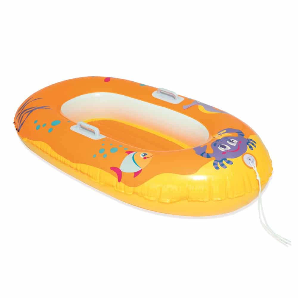 Designed to get kids moving, grooving and out of the house, the Happy Crustacean Junior Raft puts the focus back on fun! Available in 2 fun assorted designs and colors, this boat has heavy-duty handles for little ones to hold on to, and an inflatable bottom for extra comfort. Splashing in the sun has never been more fun!
