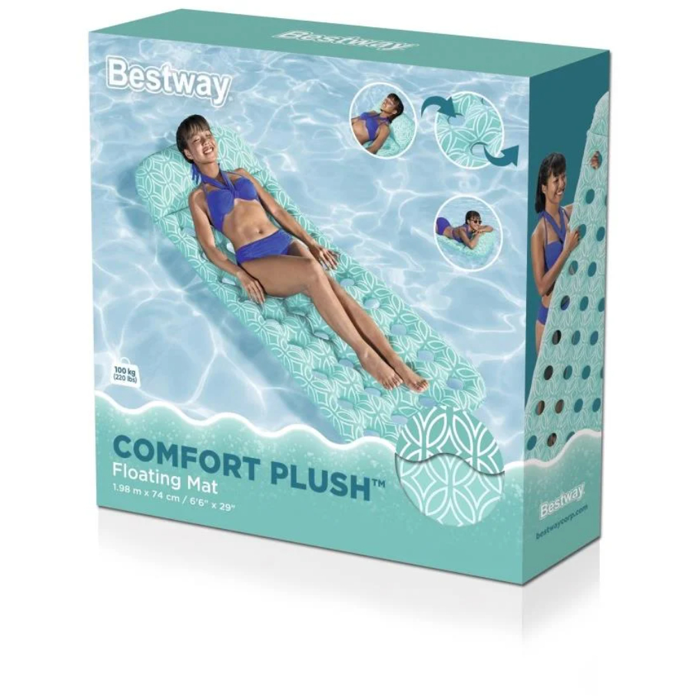 Discover the ultimate feel-good experience with the Bestway® air mattress Comfort Plush™. This inflatable lounger combines premium comfort with outstanding durability to make your time in the pool or on the beach a real pleasure. The inflated size of 171 x 65 x 25.5 cm offers generous space for relaxation. Made from durable PVC, this air mattress impresses with a maximum load capacity of 100 kg. When you come into contact with water, a fascinating color effect unfolds that takes your relaxation to a new level. The integrated pillow offers additional comfort, while the natural passages ensure pleasant cooling. The air mattress is equipped with quick-release valves so that it is ready for immediate use. The Comfort Plush™ comes with a repair patch so that minor damage can be repaired in no time.