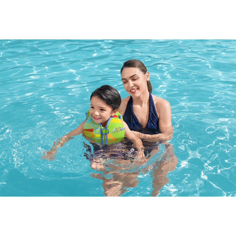 This Swim Safe ABC™ swim trainer with textile cover helps children aged 1 to 3 years to learn the basics of swimming and gain confidence in the water. As part of the level B of the Bestway® Swim Safe ABC™ learning range, the soft textile cover and integrated foam pads provide buoyancy and comfort. This swim trainer with textile cover has 2 adjustable, easy-to-open buckles with clip closure and a durable, self-locking zip with protective panel. The fabric has a UPF 50+, which blocks harmful UV rays and prevents colours from fading. This swim trainer is the ideal way for children to learn to move their arms and hands freely in the water while preparing for level C. Level A buoyancy aids are specially designed for babies and toddlers who still need maximum support in the water. Our life jackets as part of level B are for toddlers who are slowly gaining confidence but are not yet able to swim independently. The arm float as part of level C are suitable for children who have started to learn the basics. When ordering from our website, please specify which color you wish to have in the NOTE section. If color is not specified, item will be sent randomly.