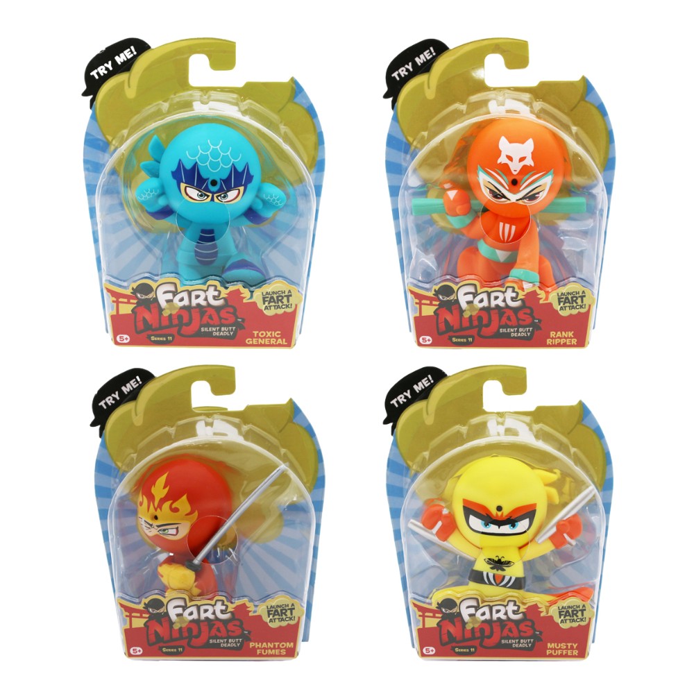 Fart Ninjas arrive ready for action in a unique fighting stance and dressed in their very own colorful armor, complete with their weapons of choice. Battery requirements: 4 x LR44 (included). Suitable for age 5 years + When ordering from our website, please specify which character you wish to have in the NOTE section. If item is not specified, it will be sent randomly.