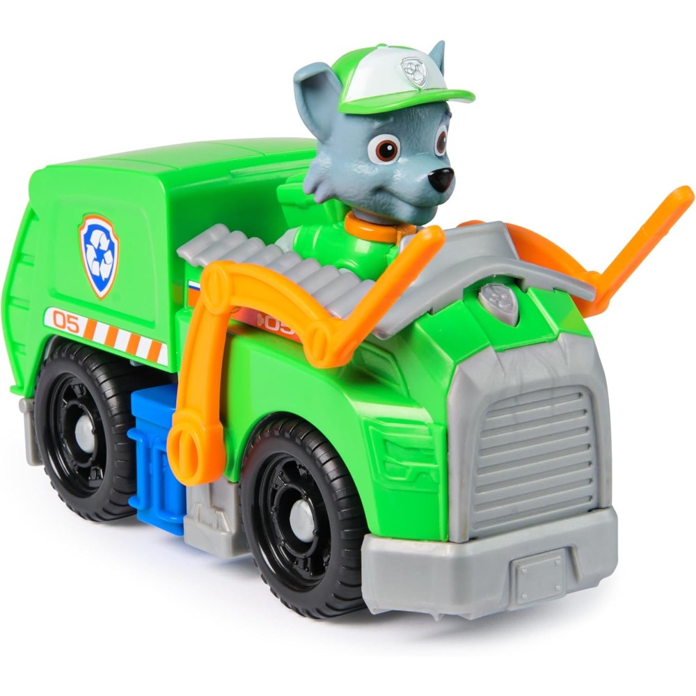 For Rocky, the recycling specialist from the popular TV series Paw Patrol and his toy vehicle, no insert is too big and no paw is too small. With authentic details and working wheels, Rocky’s recycling truck is ready for exciting adventures with the fur friends. A standard scale Rocky figure of Hero Pups (approx. 7 cm tall) is included and can be attached to the driver’s seat. As the vehicle and toy figure are held in standard scale, they fit many other play sets in the Paw Patrol toy line. The game with Rocky and his recycling truck stimulates children’s imagination to rescue missions that revolve around friendship, teamwork and courage. Together with the other puppies and their rescue vehicles (each sold separately), Rocky can save the world in Adventure Bay even better in voluptuous team adventures! For more sustainability, Rocky and his vehicle are mostly made from recycled plastic.