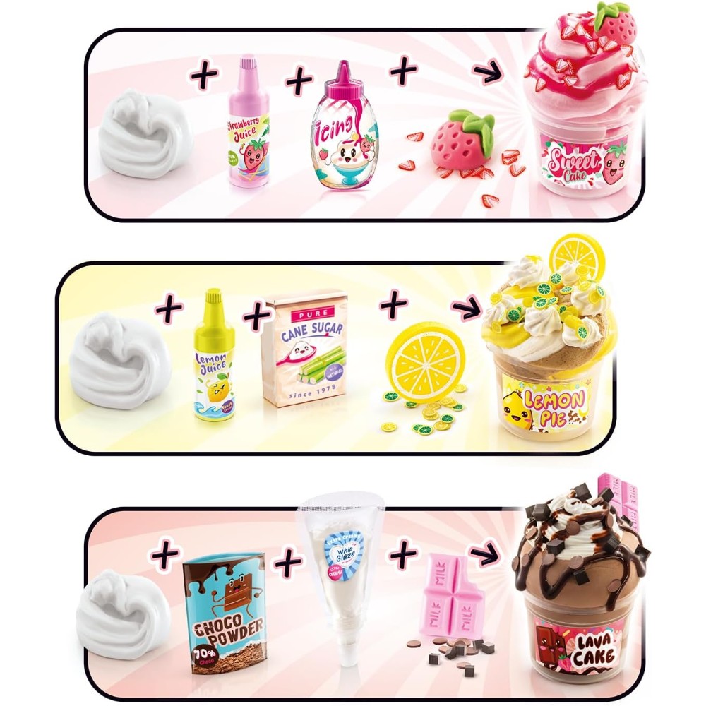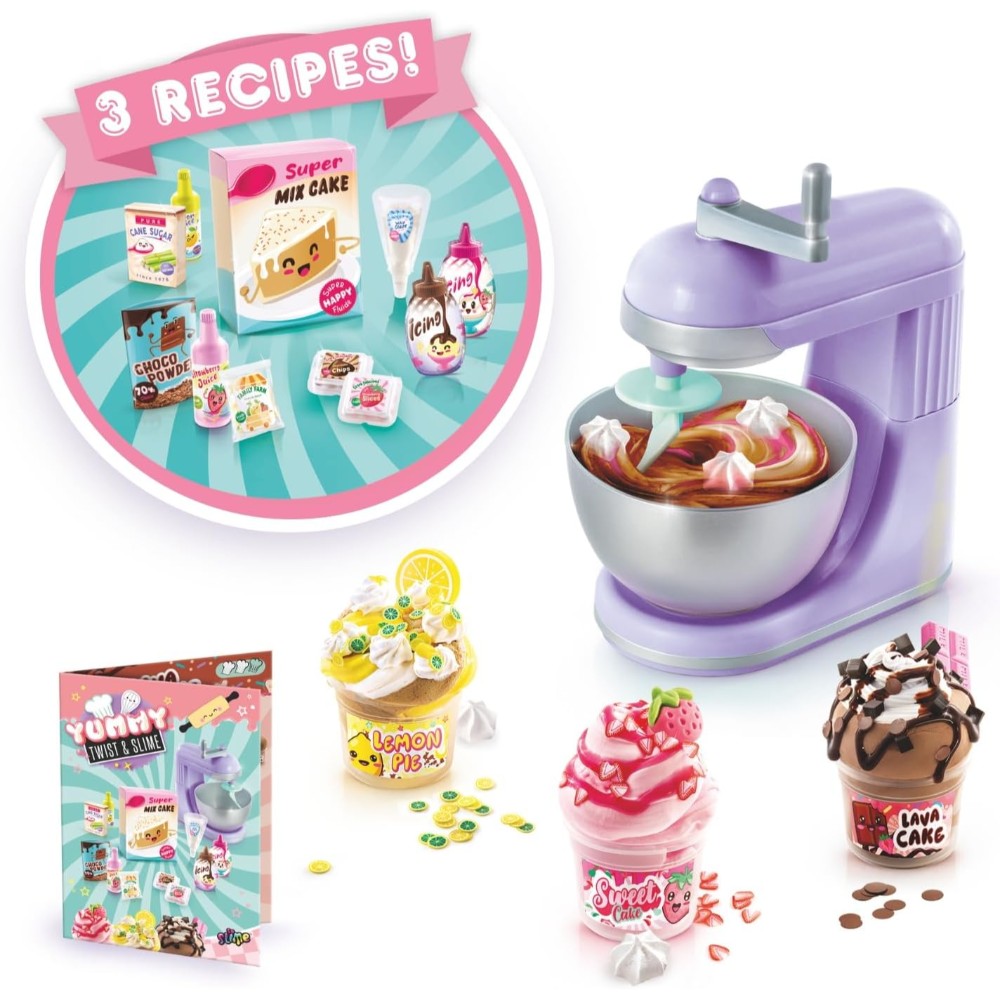 Make 3 yummy-looking slime recipes using the fun Twist N Slime mixer, then squish, twist & play! Make 3 different yummy recipes with coloured, scented dyes and fluffy slime compounds! Use the real spinning mixer and bowl to create your perfect mixtures, then add fun ingredients and decorations for even more ASMR sensations. Watch your slime come to life with vibrant colours and textures for a truly satisfying sensory experience! Twist & slime: Use the spinning mixer to combine all ingredients and create a fluffy, delicious-smelling slime treat. Get creative: Use the recipe card included to make colourful, scented slimes or mix and match your recipes to see what you can create! Cute Decoration: Finish off your creations with tiny strawberries, chocolate drops & lemon pieces, so cute! Includes: 1 Twist N Slime Mixer. Readymade Slime & Whipped Cream Slime. 2 Scented Dyes & “Cocoa” powder. 3 Sprinkle styles & 3 Charms. 1 Recipe card & 4 Storage pots. Size H27, W34, D11.7cm.