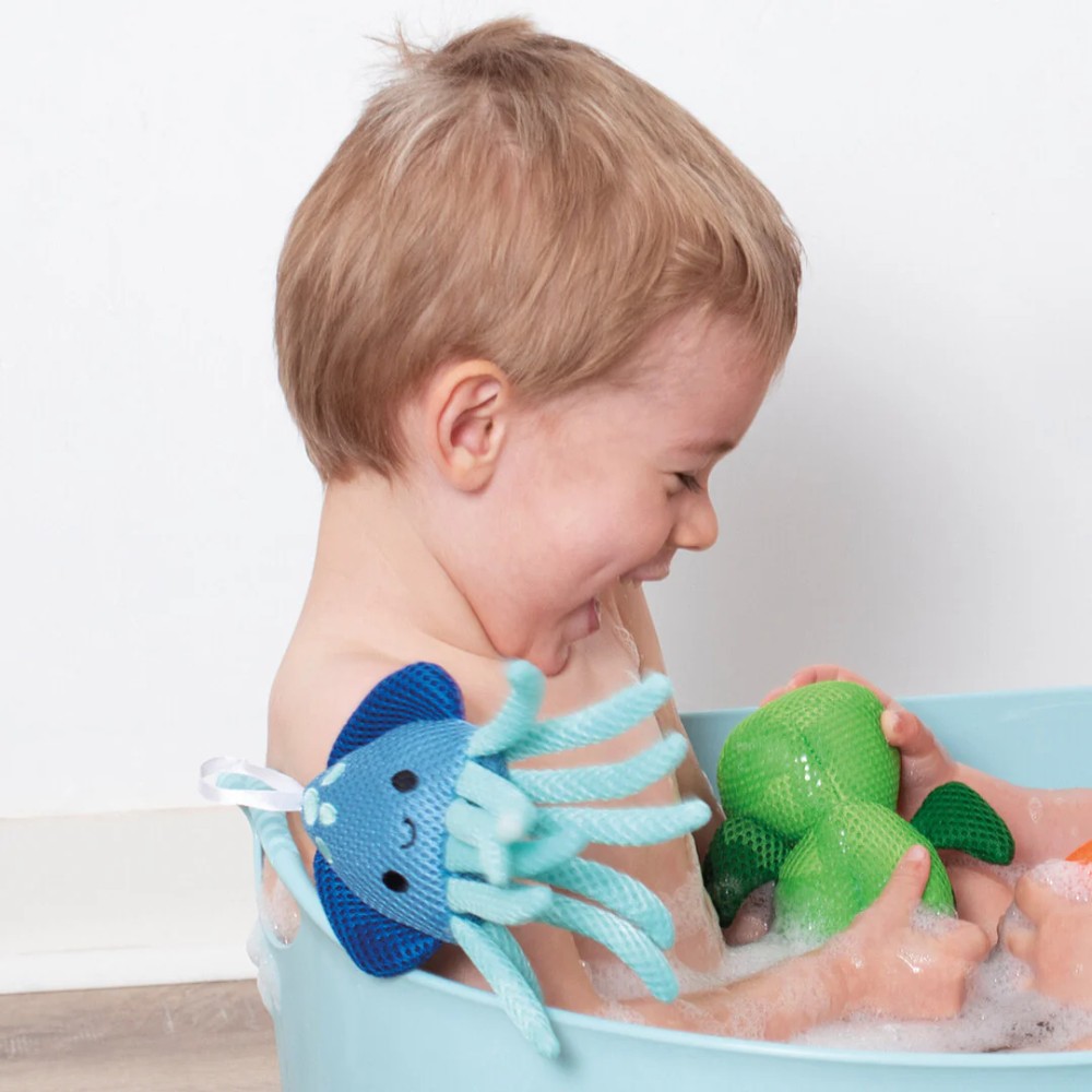 Is your little one starting to wash themselves? With this assortment of pretty fabric bath sponges, washing will become an absolute joy! Which one will they choose today? Whichever they choose, one thing is certain… any will get the washing job done with fun! Simply wet the sponge, lather it in soap and leave the cleaning to the little ones, as these products have been designed specifically for their small hands. Our small marine animals have a loop above their heads to make drying easier. This bath toy is suitable for children aged 10 months and up. When ordering from our website, please specify which character you wish to have in the NOTE section. If character is not specified, it will be sent randomly.