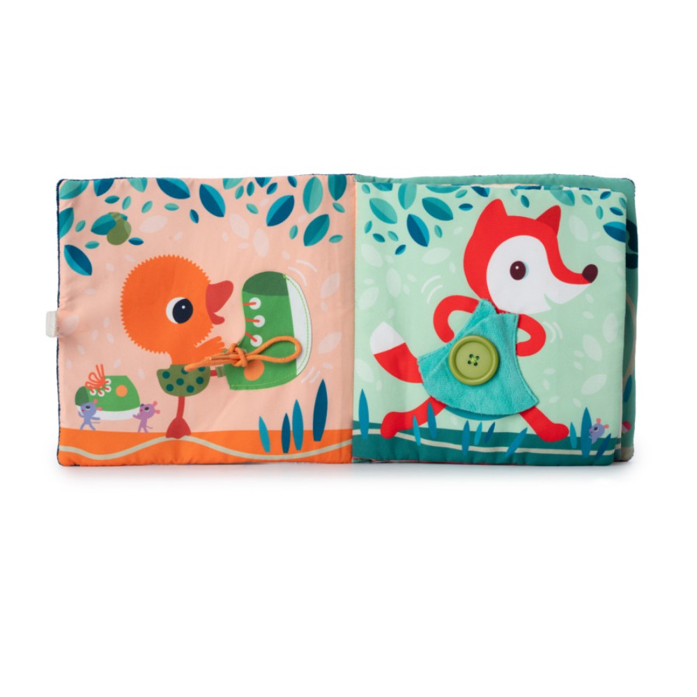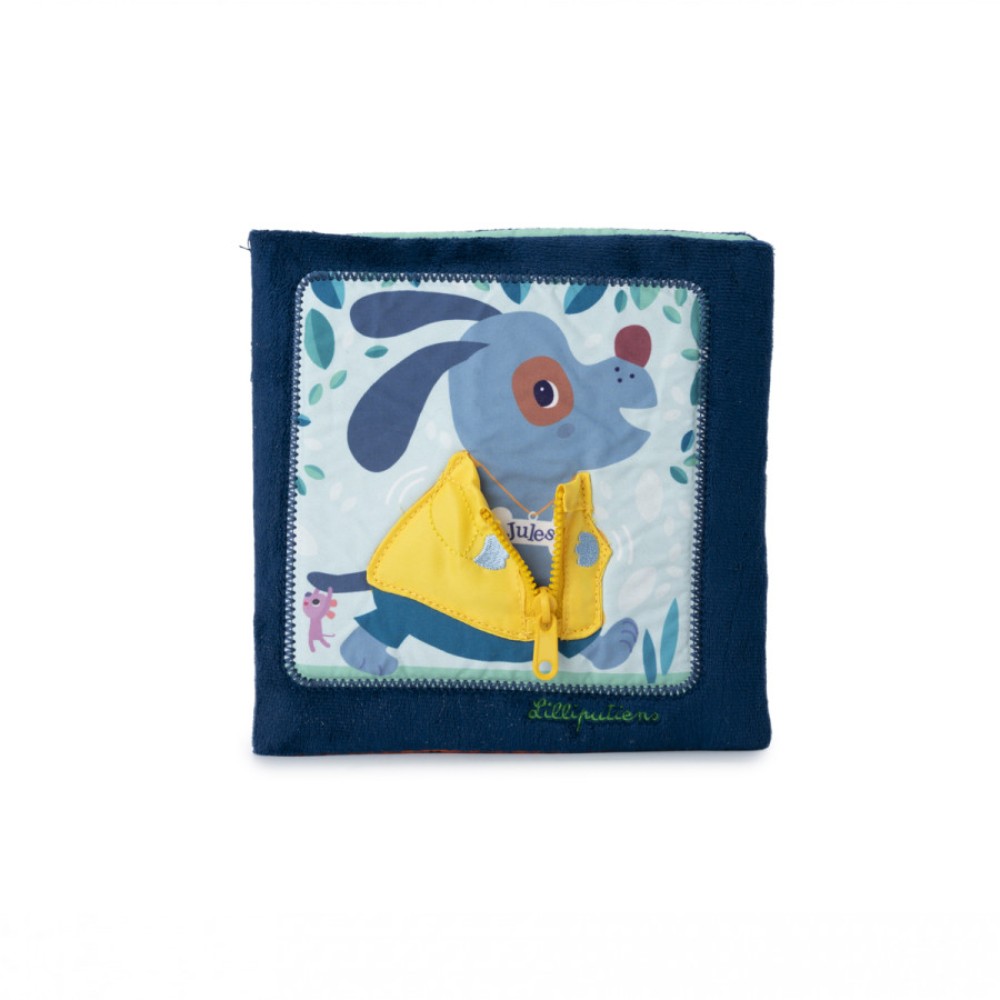 This captivating book reveals cheerful characters undressing, encouraging children to explore and discover. On each page, a piece of clothing features a zipper, a button, a lace, or another element, inviting little curious hands to practice and develop their fine motor skills. But why are all the characters undressing? They head together towards the pond for a great aquatic adventure. Beware of the mischievous little mice! They have a weakness for abandoned clothes and are determined to seize them. This fabric book offers an interactive and educational experience that stimulates coordination, fine motor skills, and encourages imagination. A first step towards autonomy.