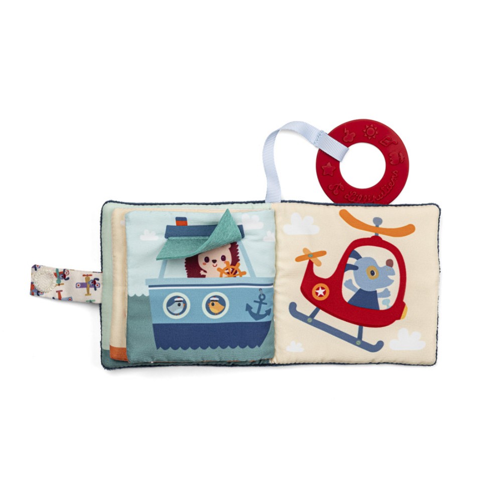 Everything is rolling in this picture book! Suitable for babies from 6 months old, the Jules the dog picture book is designed to entertain and awaken the senses of little ones. With its compact format of 10 x 3 x 10 cm, this fabric book is very soft and tells a story of racing cars, ideal for learning the different means of transport and for moments of complicity between parents and children. The story of this picture book features Jules and his friends, all aboard a vehicle: on the road or small paths, on the sea as in the air … This illustrated story is perfect for awakening the imagination of toddlers and transporting them into a world of surprises and discoveries. You and your child will spend pleasant moments exploring together all the surprises that this book has to offer. Thanks to this picture book, baby develops not only his sight and motor skills, but also his thinking and imagination. The colorful pages and pleasant textures stimulate the senses, while the first stories promote language development. The moments shared around this book are as many opportunities to create unforgettable memories. The little extra of this picture book is the red teething ring attached to it. With its raised patterns, it helps soothe baby’s gums when their teeth start to come through. So, your little one can browse through his book or chew on the ring in complete safety. The Jules the dog picture book is easy to take anywhere, and can be used to entertain baby at home or on an outing. If you are looking for a gift for a birth, this Lilliputiens fabric picture book will be a sensation. Its quality, design and features make it a perfect choice to amaze little ones and their parents. Let’s go!