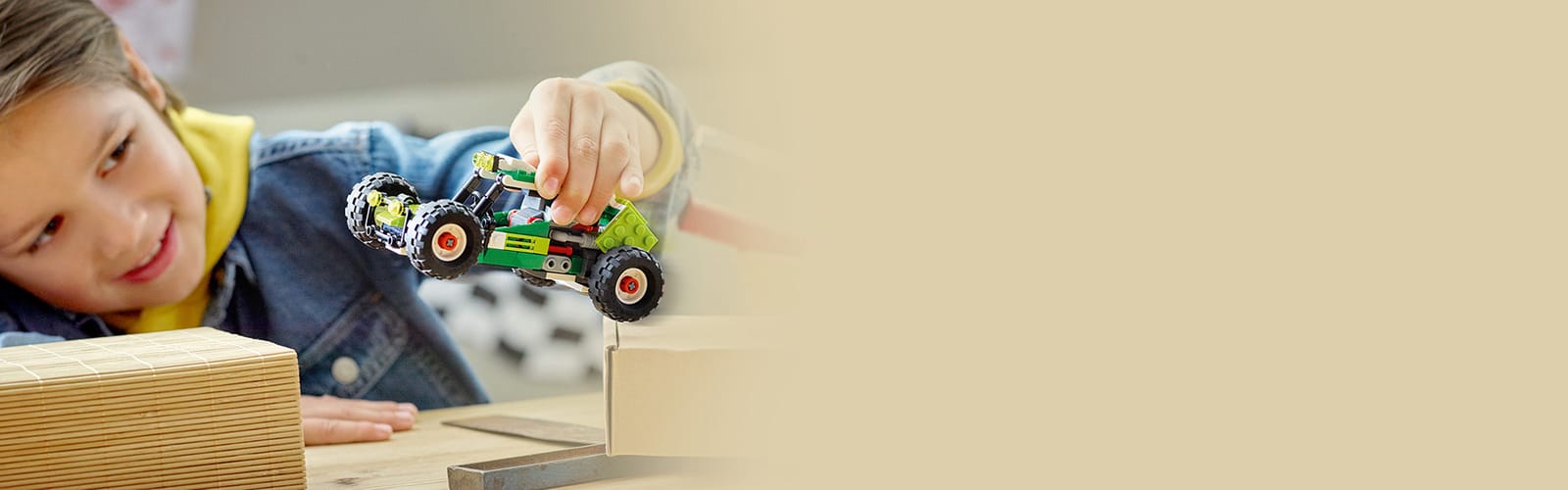 Nonstop adventures – Kids can stage countless different stories, racing through forests or over sand dunes with the Off-road Buggy and ATV, or lifting heavy items with the skid loader