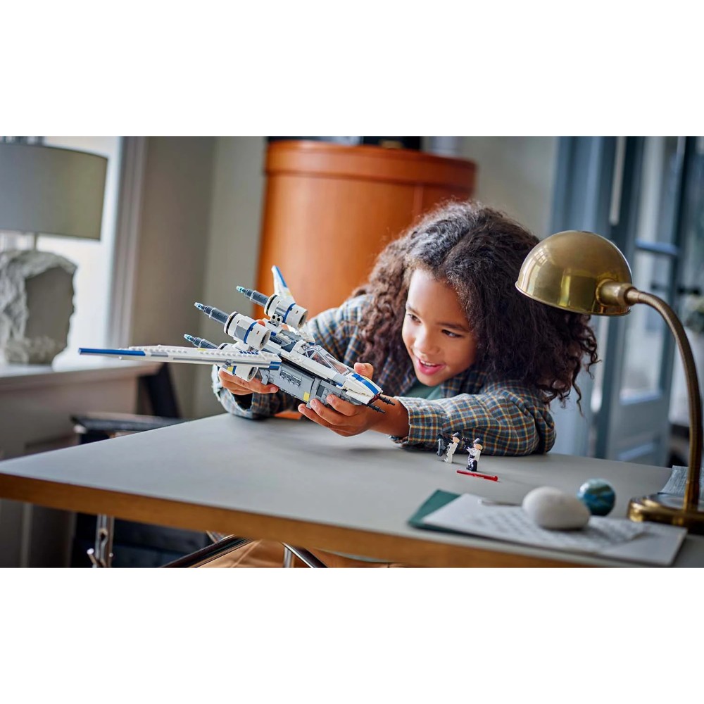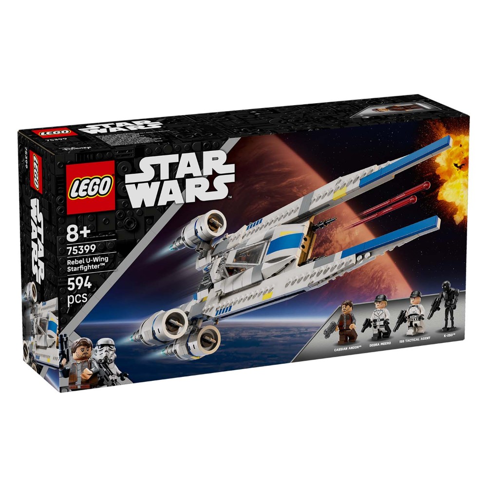 Kids team up with Cassian Andor and K-2SO to recreate Star Wars: Andor™ Season 2 scenes with this Rebel U-Wing Starfighter buildable model kit (75399). A playful holiday or birthday gift for boys, girls and any Star Wars™ fans aged 8 and up, the LEGO® brick-built U-wing starfighter toy features a swing-wing function to adjust the wings from landing mode into the iconic ’V’ formation for flight, plus 2 spring-loaded shooters. The canopy of the cockpit is released by pressing a lever and there isan opening compartment for passengers and cargo. This buildable Star Wars vehicle toy playset includes 3 LEGO Star Wars minifigures – Cassian Andor, Dedra Meero and an ISB Tactical Agent – plus a K-2SO LEGO droid figure and assorted accessories toinspire kids’ imaginations. Make the creative experience extra fun for children with the LEGO Builder app, where they can zoom in and rotate a digital 3D version of the Star Wars starfighter as they build. Dimensions – The buildable vehicle in this 594-piece set measures over 3.5 in. (9 cm) high, 16 in. (41 cm) long and 6 in. (16 cm) wide.