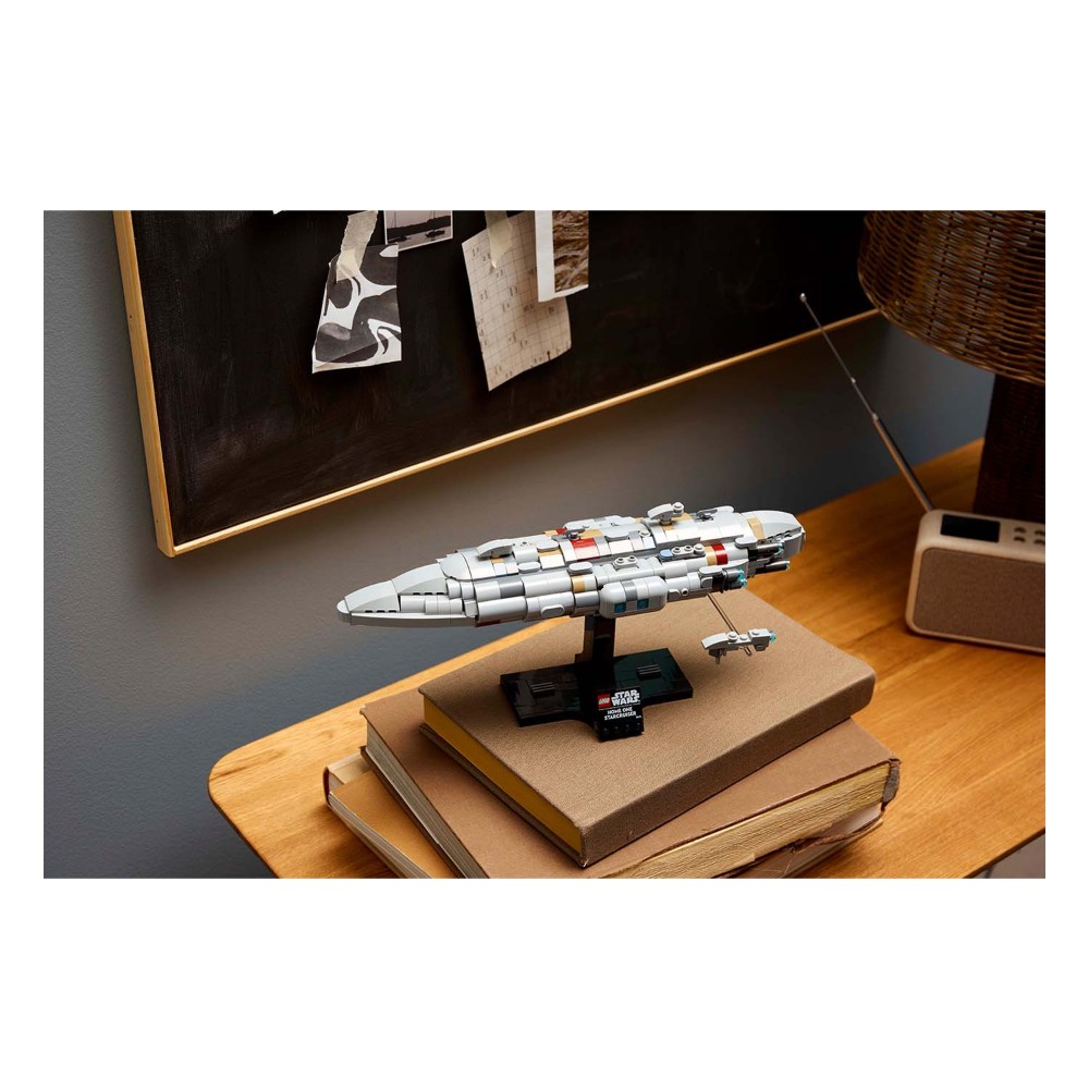 • Create a Star Wars™ display – Showcase your creation on the stand with a nameplate, and use the transparent element to attach a brick-built Nebulon-B Medical Frigate as if it’s flying alongside