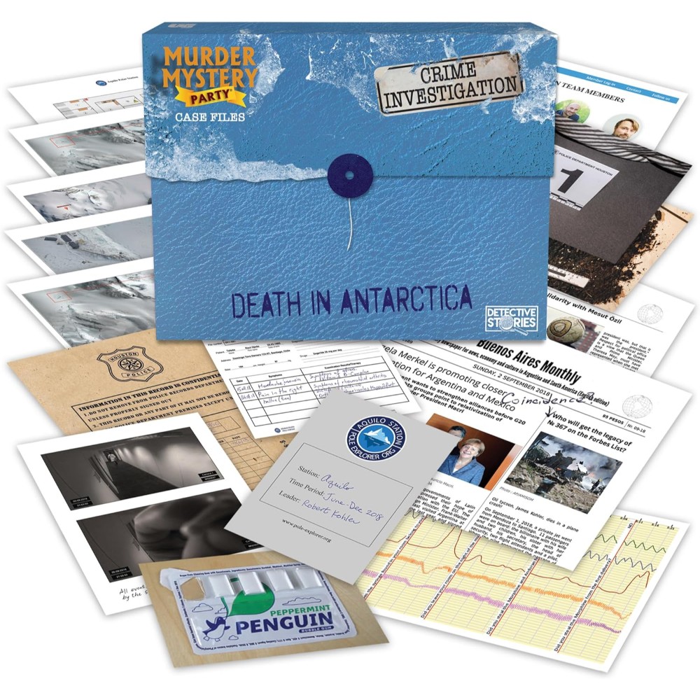 Budding detectives will love every minute of trying to solve the Death in Antarctica Case Files. This crime-busting game provides everything you need to try and solve the case! You have been given the Death in Antarctica Case Files but who had the MMO? Who had the Motive to kill the victim? Who had the Means? And who had the Opportunity? Solve the murder of Robert Kohler, former head of the Aquilo Polar Station in Antarctica. Martin Moor has been convicted of the murder and his execution is imminent. Can you help prove his innocence and put the right killer behind bars? Murder Mystery Party Case Files are packed with physical and digital evidence, which puts the player in the detective’s shoes. Players need to think like a detective and either work alone or with others to determine the motive, means, and opportunity of each suspect to solve the case. Case Files is an extremely popular category of mystery games following in the footsteps of murder mystery parties and escape rooms and perfect entertainment for games nights and dinner parties. Ideal as a single player or multiple player game, for players age 12 years and over. Top Tip: Some of the characters in this game are based in the US, so if you dial their number you may need to add a (+1) or 001 to the start!