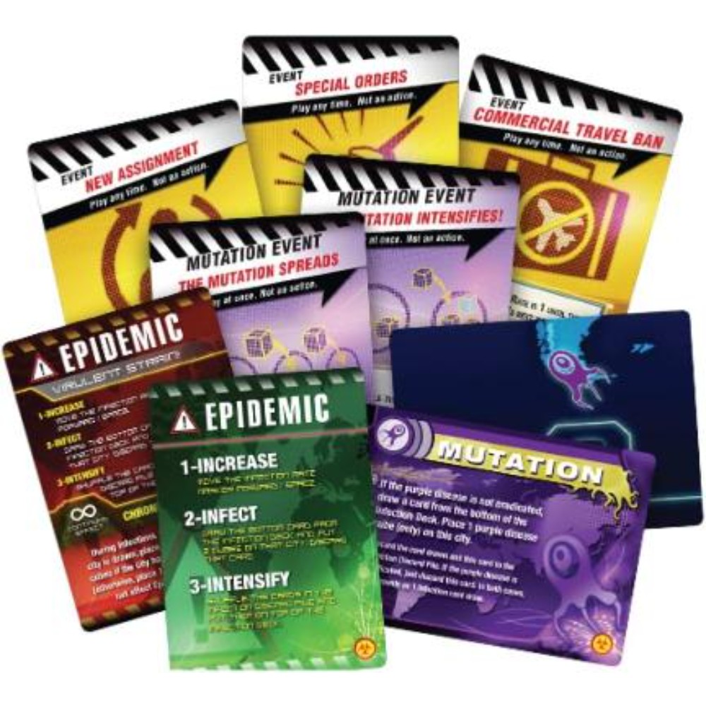 Has saving humanity become routine? Spice Pandemic up with new roles and events. Add a fifth player, try Legendary difficulty, or add an optional challenge: What if one disease is particularly nasty? Or, if a fifth disease is wreaking havoc? Or, even worse, if that fifth disease is being spread by a hidden Bio-Terrorist? Can your team work together to cure diseases in a world on the brink of disaster?