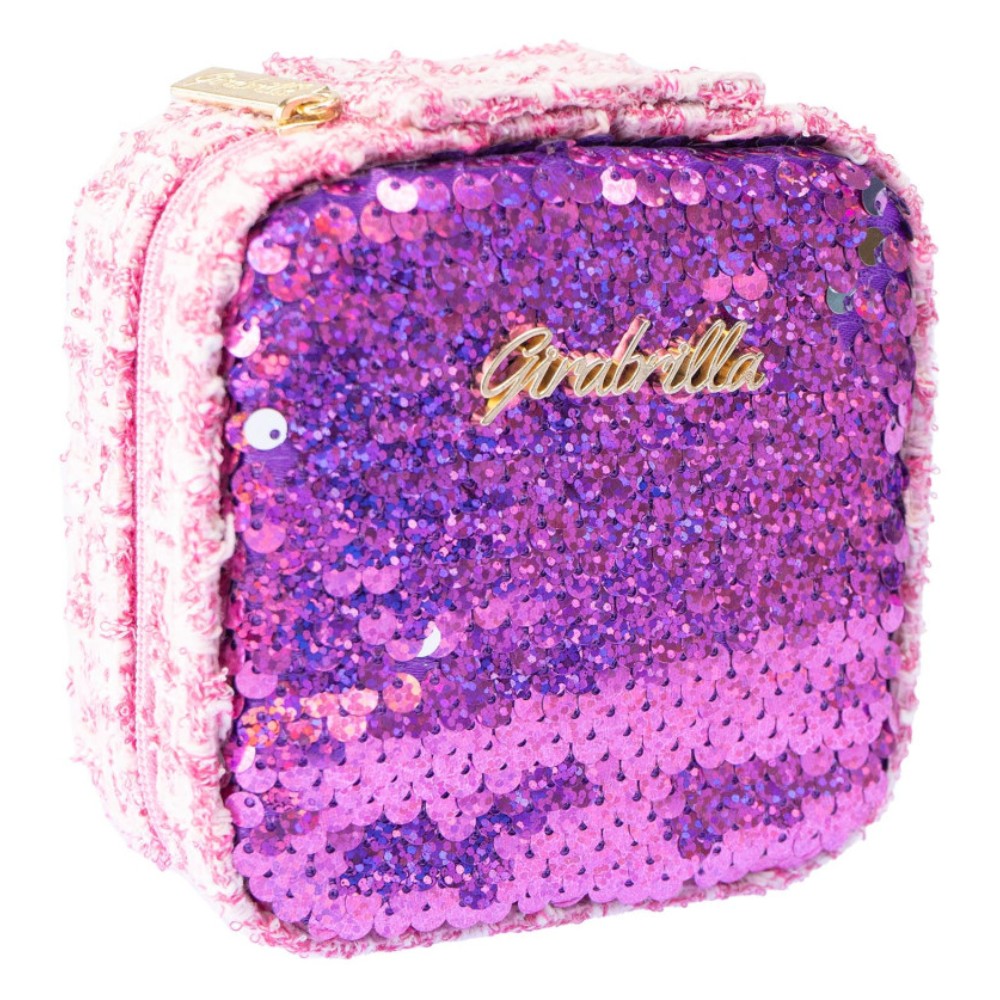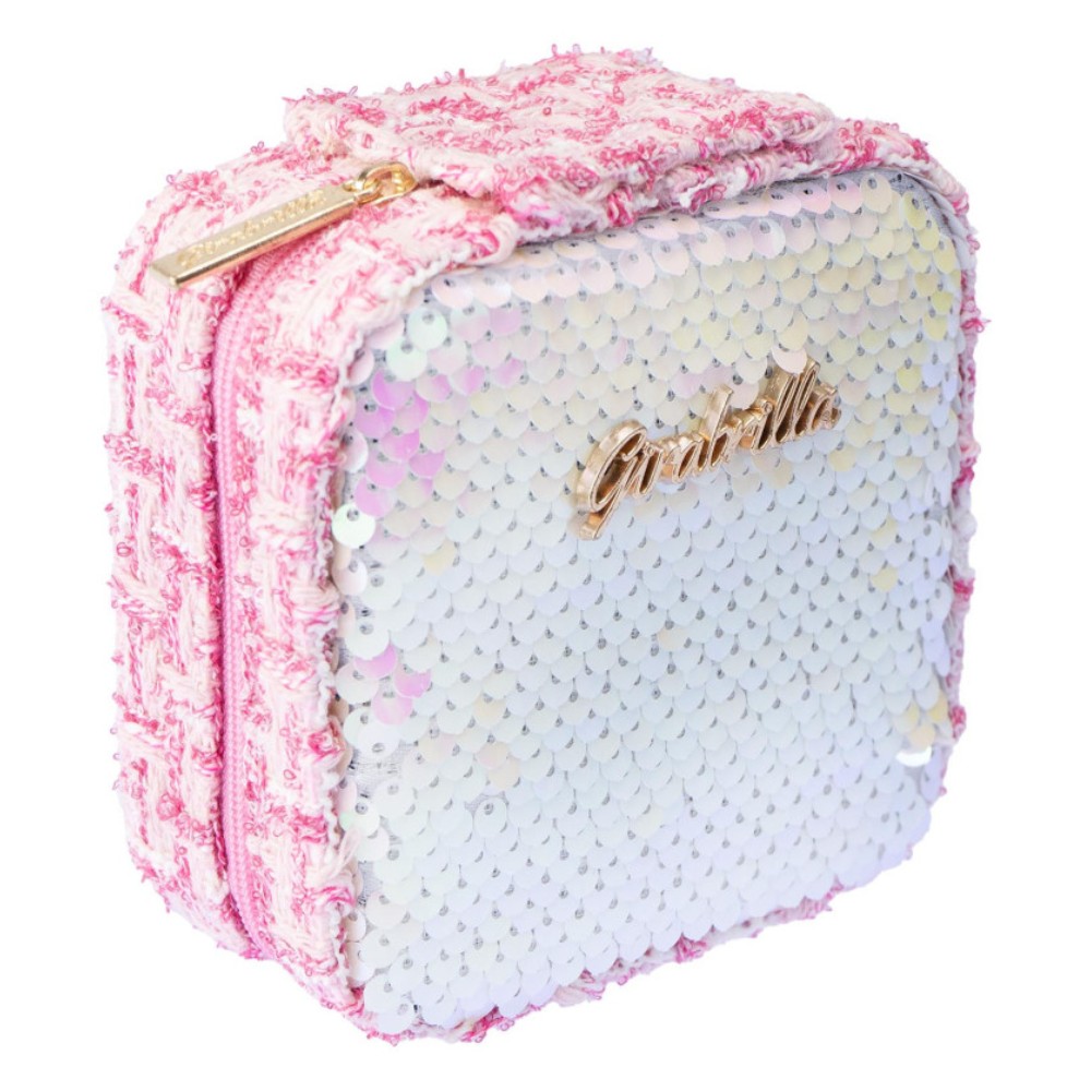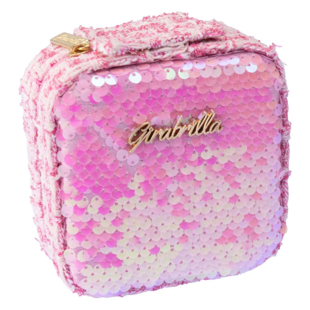 Mini case with reversible sequins and tweed. Contains: eyeshadows, lipgloss and applicator. Each makeup case is decorated with shiny sequins that change color when you pass your hand over it, providing a fascinating visual effect. The different colors and models, which are sold separately, allow each child to choose the one that best suits their personal tastes. Its compact size makes it ideal to take anywhere, whether at home or when traveling. The Girabrilla Mini Makeup Case has been designed with children’s safety in mind. All makeup products are hypoallergenic and easy to wash, ensuring that little ones can experiment without worry. This set not only promotes creativity, but also helps develop fine motor skills as children practice applying makeup. When ordering from our website, item will be sent randomly.