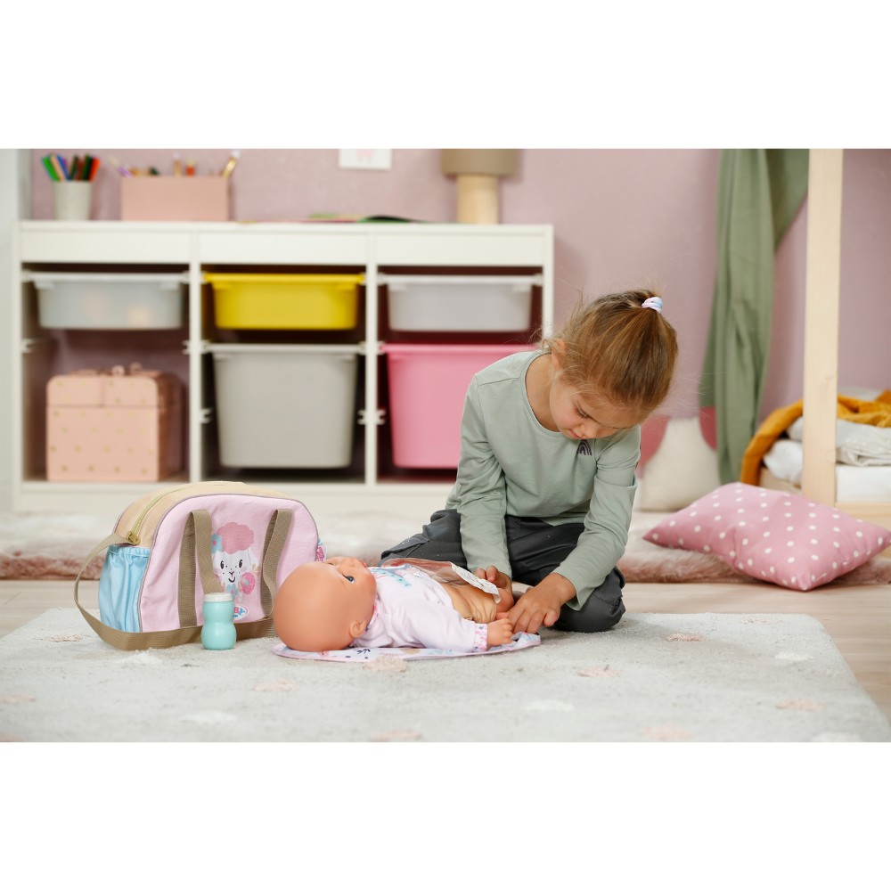 This changing bag contains everything little doll parents need to care for their 36 cm and 43 cm dolls. With the included changing mat, diaper and powder box, the doll is always well taken care of. The bag is comfortable to carry and has enough space for other accessories. High-quality accessories for BABY born. Allows for even more varied and long-lasting, fun play.