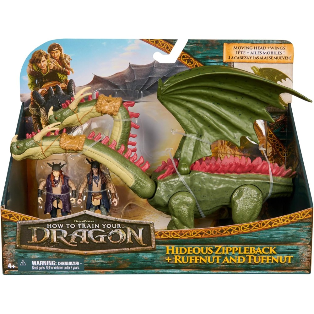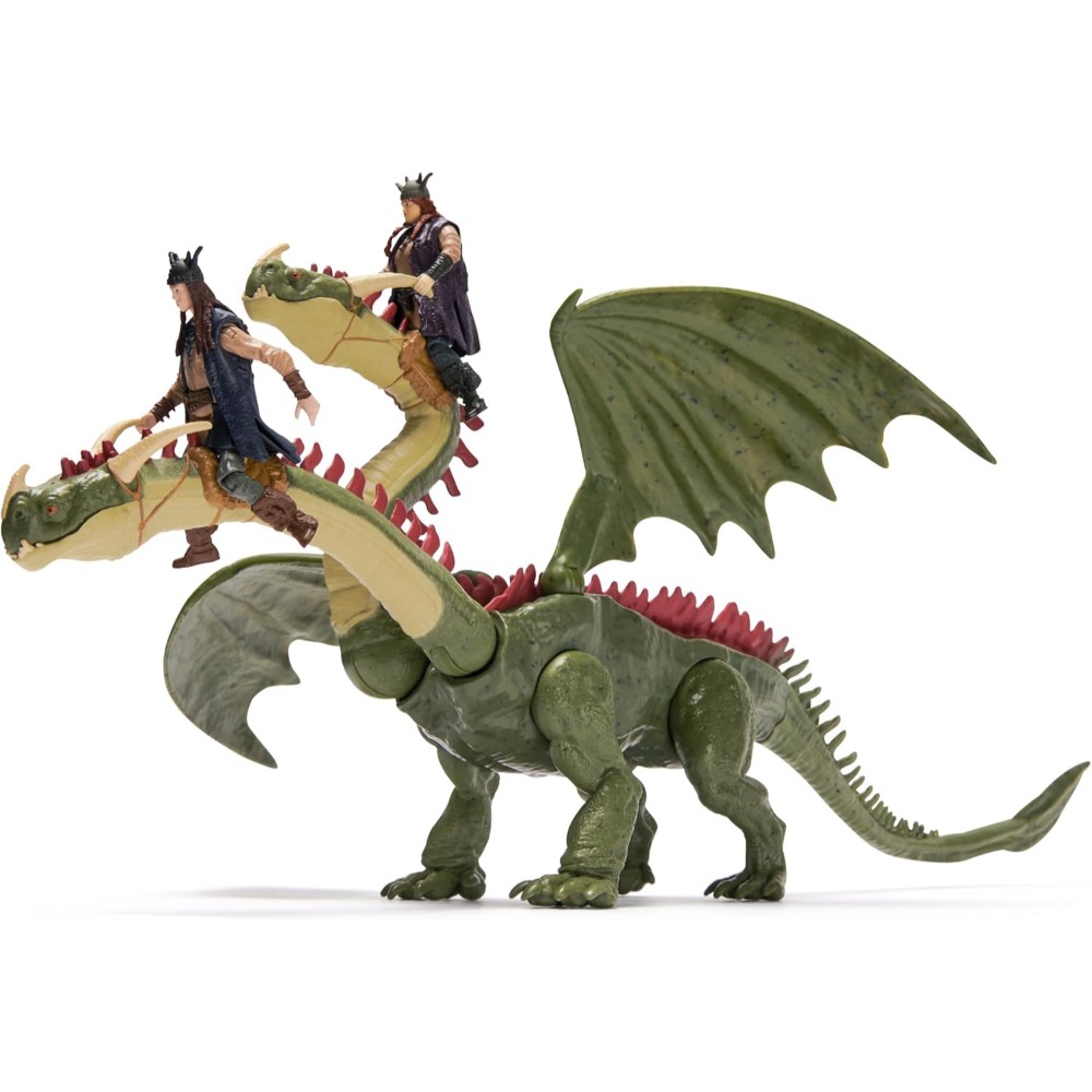 Fly to the legendary Isle of Berk with this Dragon and Viking action figure set. This dynamic trio consisting of the 19-inch Horrifying Bizippo and the 3-inch Testabruta and Testaditufo comes to life with authentic style of the film and moving limbs, to play with imagination and invent epic stories with realistic dragon wings. Kids can attach both Vikings to the dragon using the saddle feet before recreating their favorite scenes or inventing adventures and missions. Ideal for sensory and fiction play, these toy dragons encourage creativity and heroic role play. Launch into the adventures of dragons with the pretend play toys suitable for children aged 5 to 7 years.