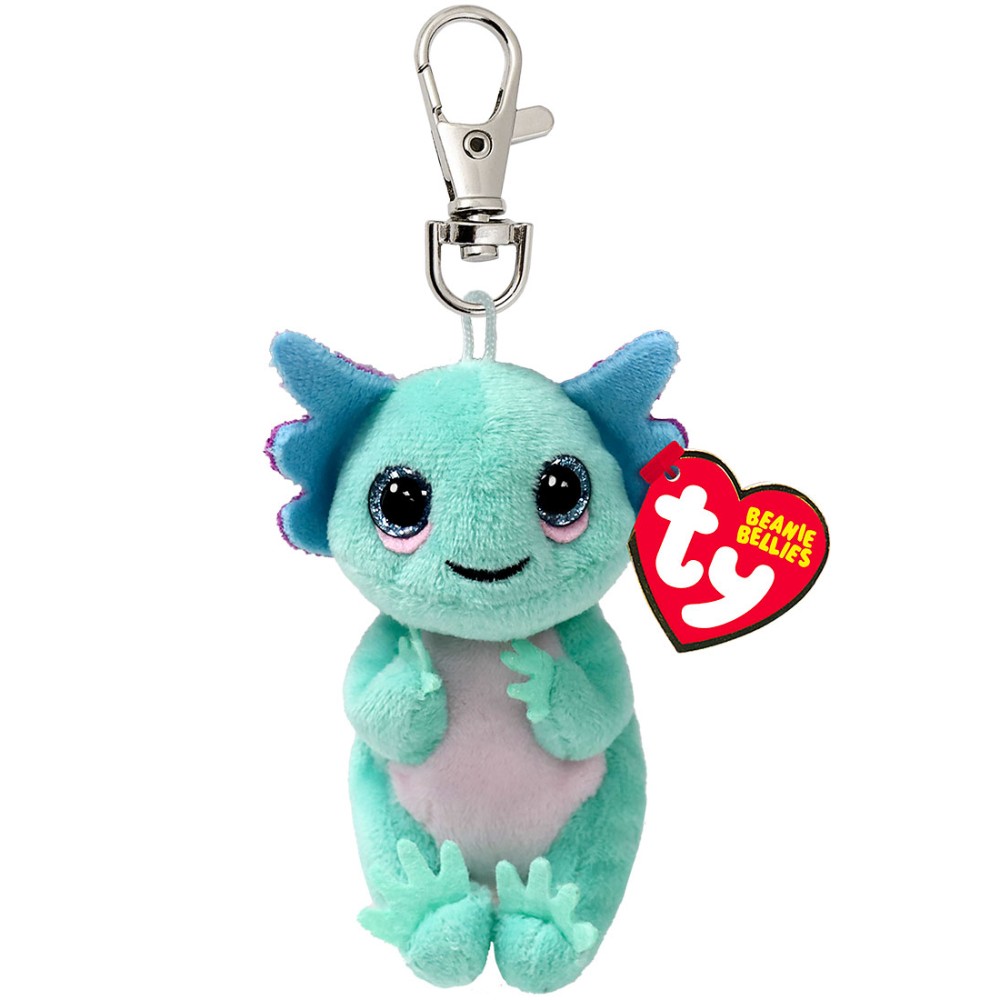 Cute Ty keychain with a soft toy in the shape of an Axolotl in light blue and purple shades. The Ty keychain is the perfect addition to the key chain, with the soft toy being super cute, soft and delicious. The Soft toy is a sweet, little friend who is always with you on the go. On the soft toy is a heart-shaped card with the teddy bear’s name, birthday and a little poem.